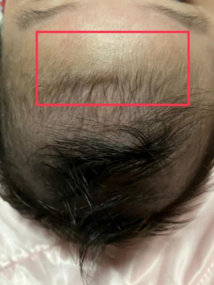 頭の骨の形で、そのように出ているということでしょうか?大泉門との境目で、出ているようにより感じられる